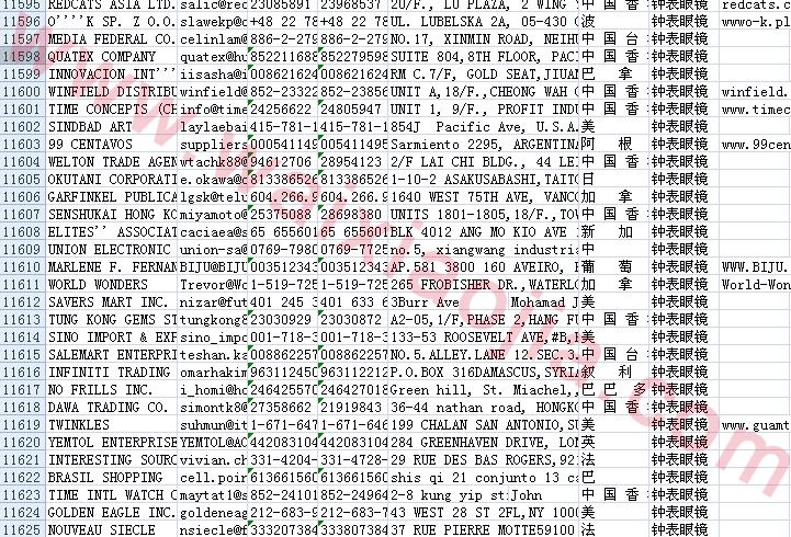 鐘表眼鏡采購商名單數據為Excel格式,信息可任意修改、復制、打印、導出及導入到傳真、郵件群發等軟件中,無任何限制。
