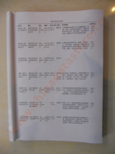 | 南京某個行業外資企業黃頁 | 如機械、機電、化工等行業 | 80% | RMB:300元 |