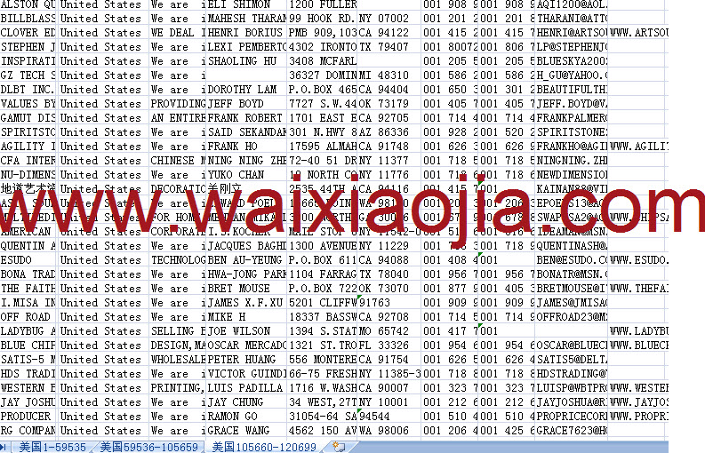 美國采購商名單數據為Excel格式,信息可任意修改、復制、打印、導出及導入到傳真、郵件群發等軟件中,無任何限制。