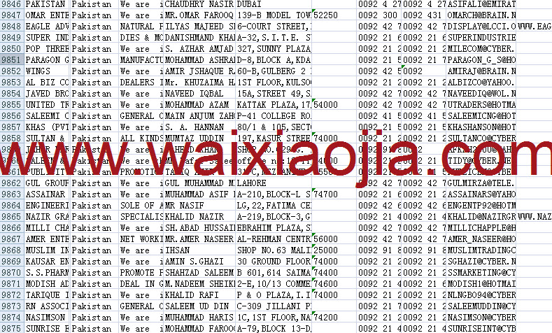 巴基斯坦采購商名單數據為Excel格式,信息可任意修改、復制、打印、導出及導入到傳真、郵件群發等軟件中,無任何限制。