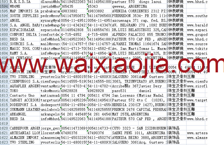 阿根廷采購商名單數據為Excel格式,信息可任意修改、復制、打印、導出及導入到傳真、郵件群發等軟件中,無任何限制。